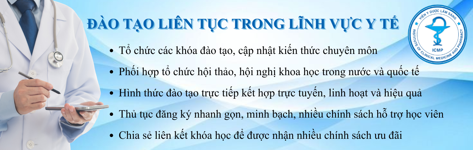 - Đào tạo liên tục: Tổ chức hội nghị, hội thảo khoa học, tập huấn, đào tạo bồi dưỡng nâng cao trình độ chuyên môn trong các lĩnh vực khoa học sức khỏe, vật liệu y sinh, công nghệ sinh học, mỹ phẩm, dược liệu, trang thiết bị y tế và vật tư tiêu hao.
